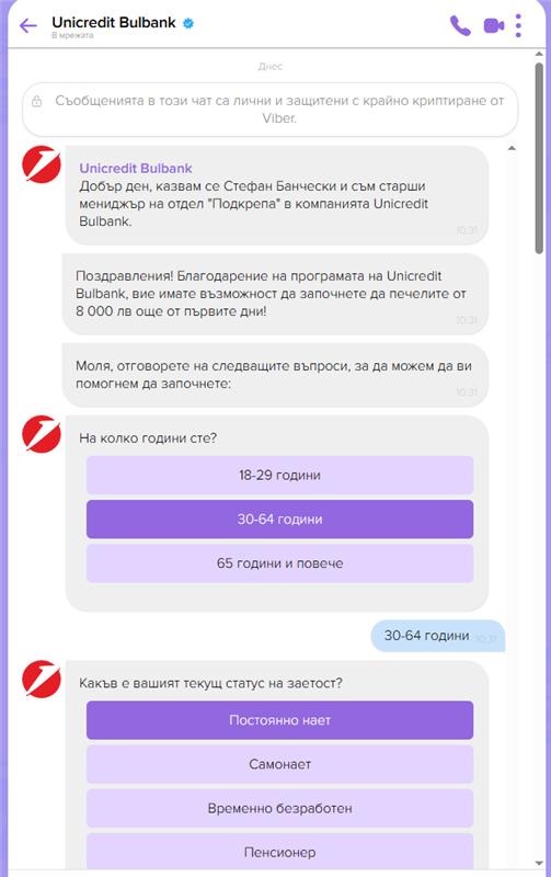 Бихме искали да Ви предупредим за повишен риск от фишинг/ смишинг/ вишинг атаки, в които лица представящи се за служители на УниКредит Булбанк АД Ви предлагат възможност за бърза и лесна печалба чрез инвестиции.