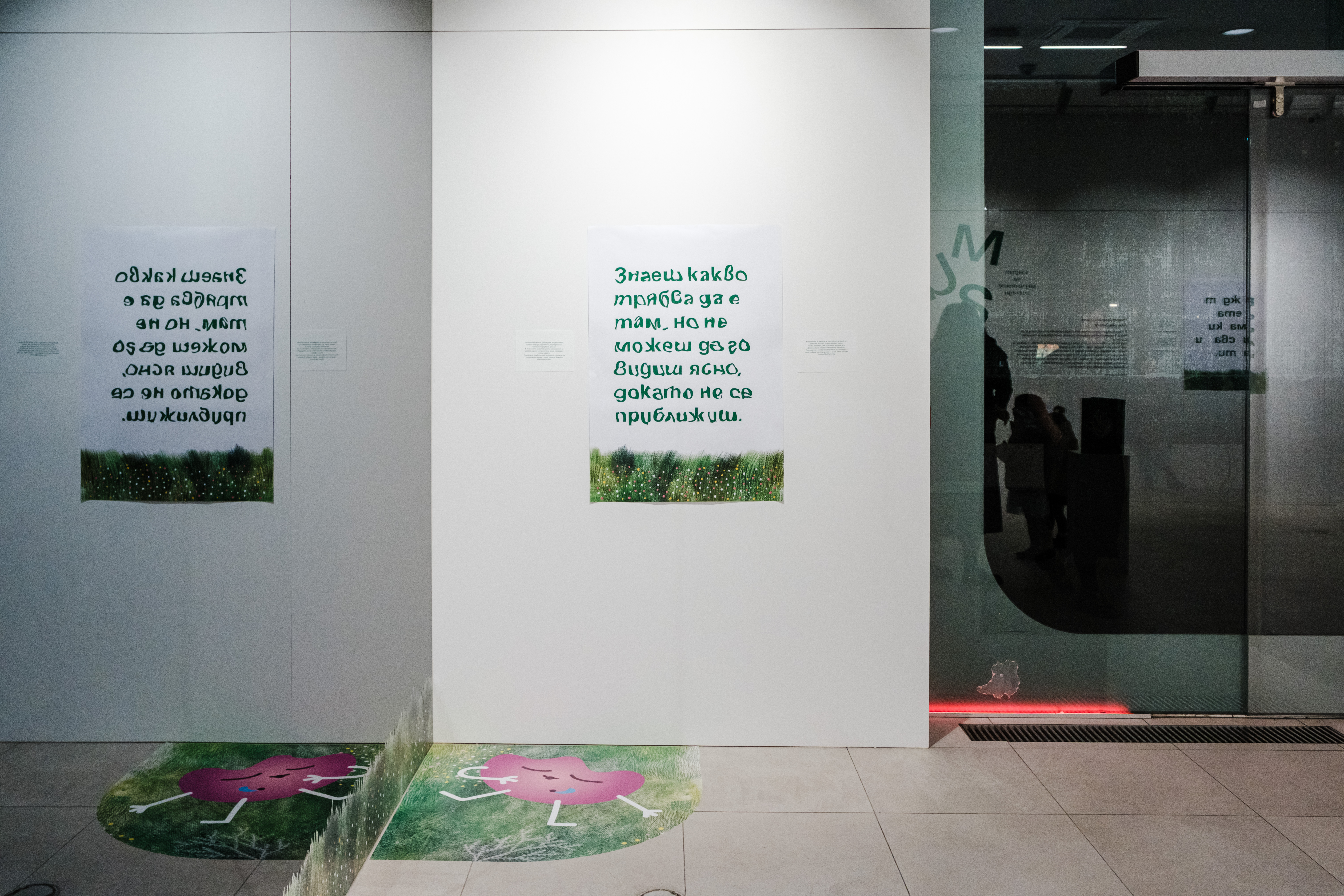 Книгата, сърцето на изложбата, е създадена като преживяване – с прозрачни фолиа, Брайлова азбука, размазан текст и липсващи букви, които поставят читателя в позицията на човек, който „вижда различно“. Въображаемият град, създаден за детската аудитория, води през различни състояния на зрението, като всяка локация носи свое усещане и предизвикателство.